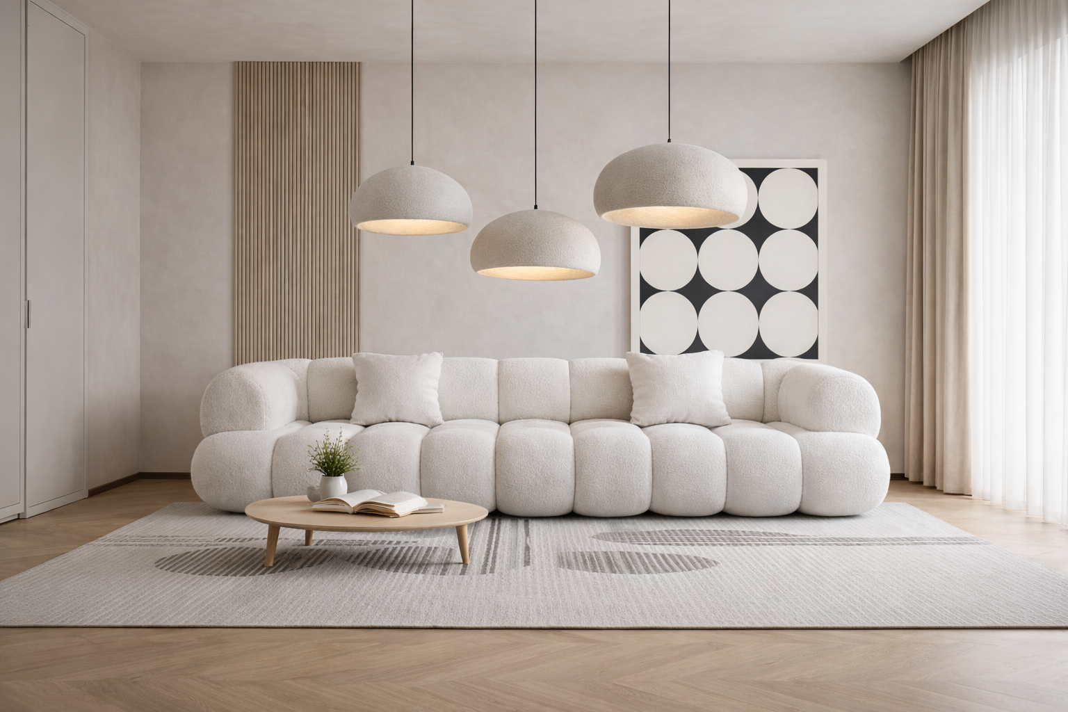 After - The room transforms instantly into a calm, refined space. Radiant Moon casts a soft, diffused glow that creates warmth, balance, and visual harmony. Its sculptural form adds a modern Scandinavian touch, turning lighting into a design statement that elevates the entire interior.
